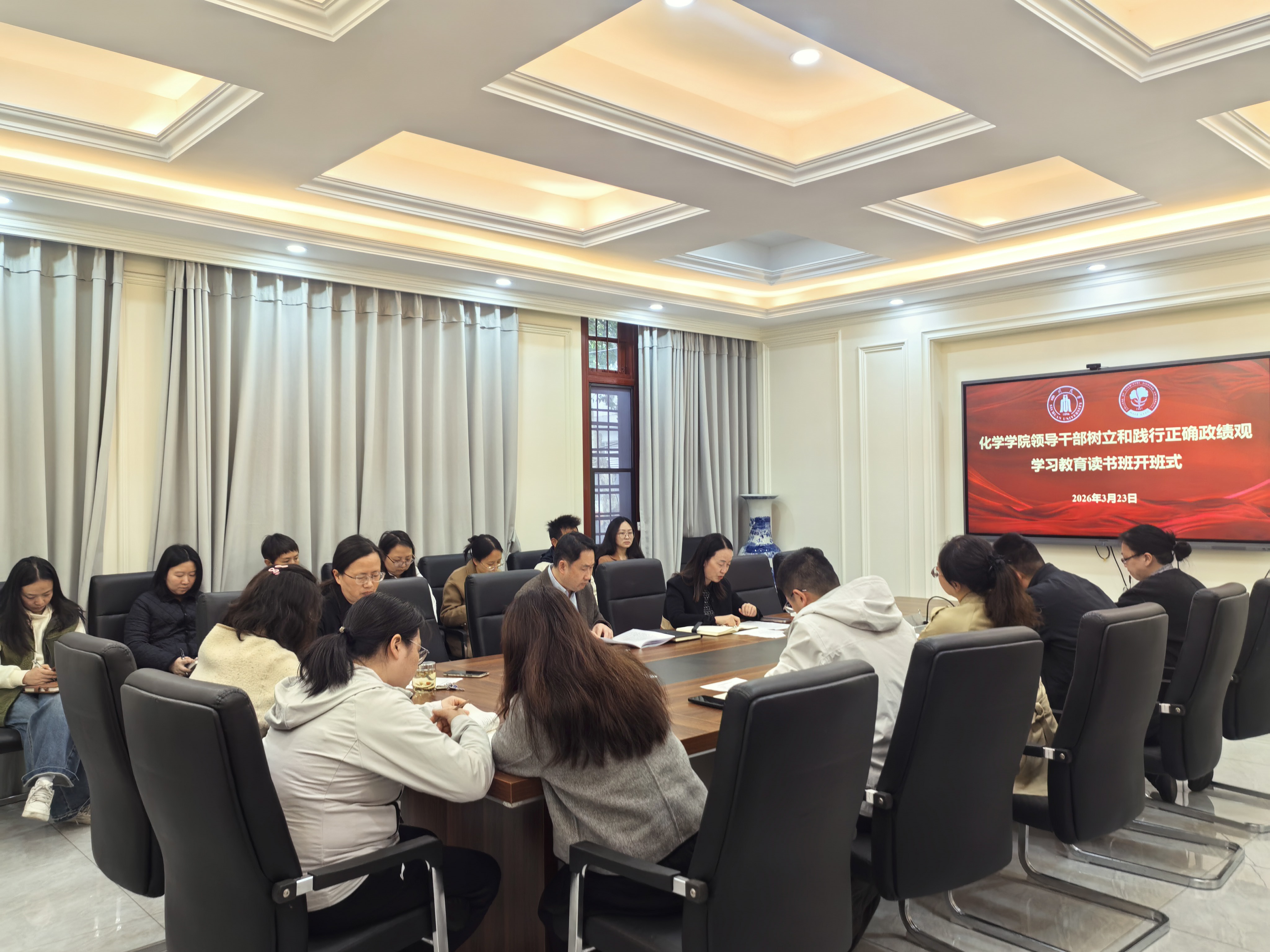 于3月23日和30日举办了领导干部读书班。全体党政领导班子成员、“两委”委员、支部书记、党员代表等同志参加,学院党委书记谢均主持开班式和结业式。