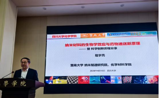 赵宇亮院士是我院 1985 届放射化学专业校友,深耕纳米科学领域数十年,是国际纳米毒理学与纳米安全领域的开创者。报告中,赵院士系统阐释了纳米材料生物安全性的核心科学问题,分享了其团队率先揭示的无机碳纳米材料体内生物安全规律、毒理学机制与肿瘤纳米药物化学生物学机制等原创性成果,介绍了纳米机器人体内药物智能递送研究方向的前沿进展,同时结合自身科研生涯,深情回顾了从川大求学起步、赴日深造、归国创业的创新历程,为师生们分享了科研报国、勇攀高峰的宝贵经验。