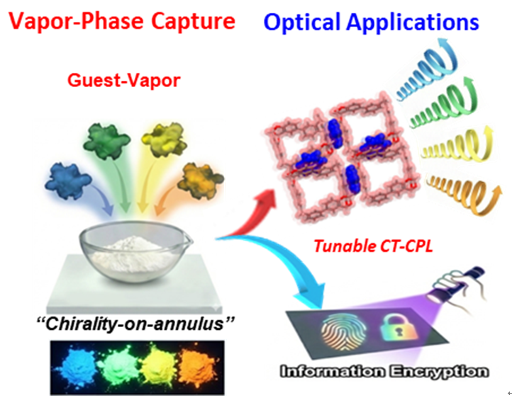 在超分子化学领域,基于大环芳烃的电荷转移(CT)组装在固态分子组装中发挥着重要作用。然而,CT共结晶的形成通常需要大量的供体-受体筛选和复杂的溶剂优化,高度依赖结晶方法。探索能否利用大环的独特结构特征,通过与传统共结晶截然不同的分子工程途径实现CT复合物的形成,是该领域的重要发展方向。此外,将手性元素直接嵌入大环骨架的“手性在环带上”设计,通常能赋予体系更优异的手性识别与手性光学特性。